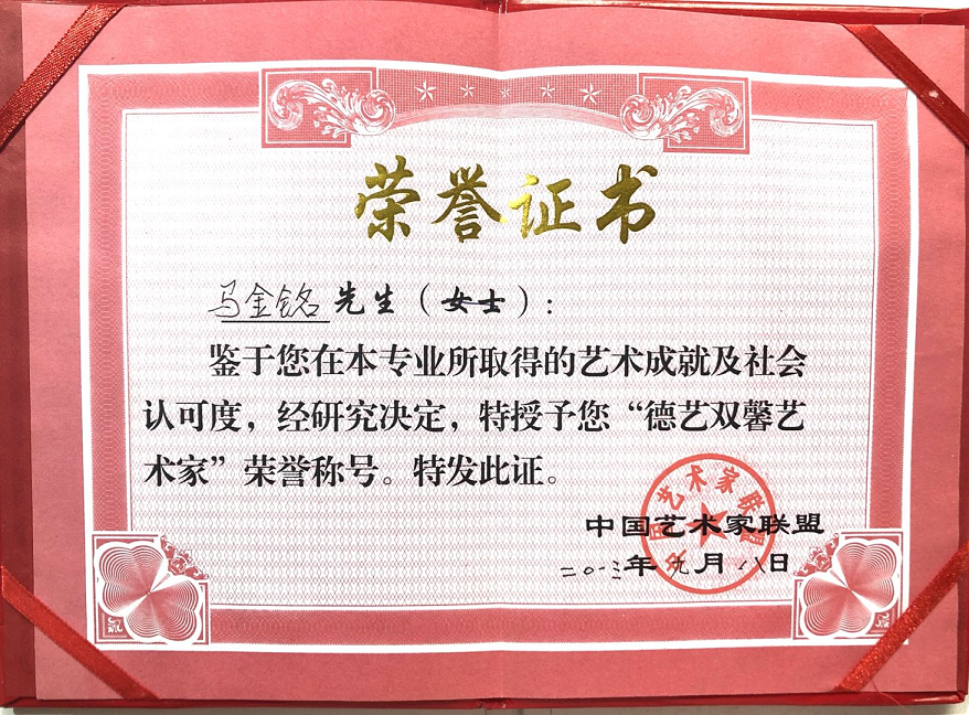 2013年9月8日,中国艺术家联盟授予“德艺双馨艺术家”荣誉称号。